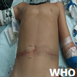 (d): schématisation de la fermeture cutanée