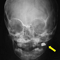 Metallic foreign body in the cheek mimicking a chronic facial abscess.