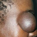 Une papule rose de la tempe