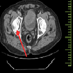 Indirect inguinal hernia containing omentum in an adult male: a clinical image